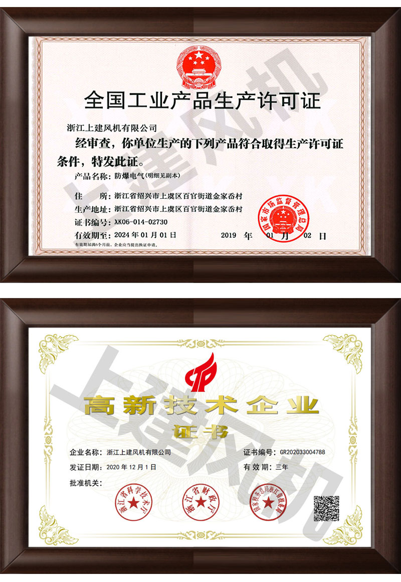 防爆电气生产许可证 & 高新技术企业证书