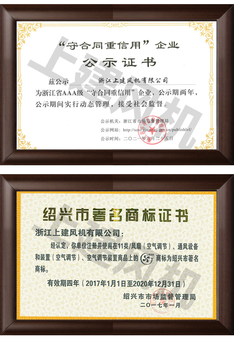 守合同重信用公示证书 & 绍兴市著名商标证书
