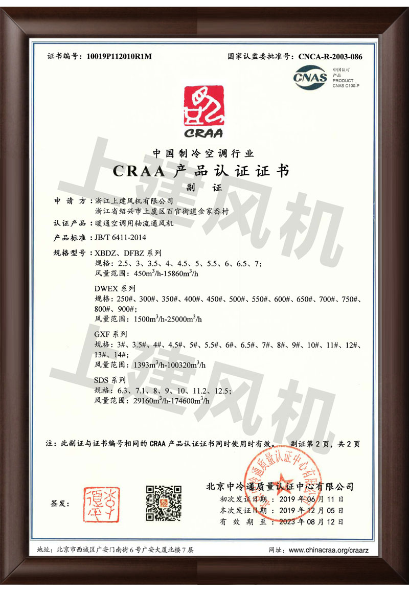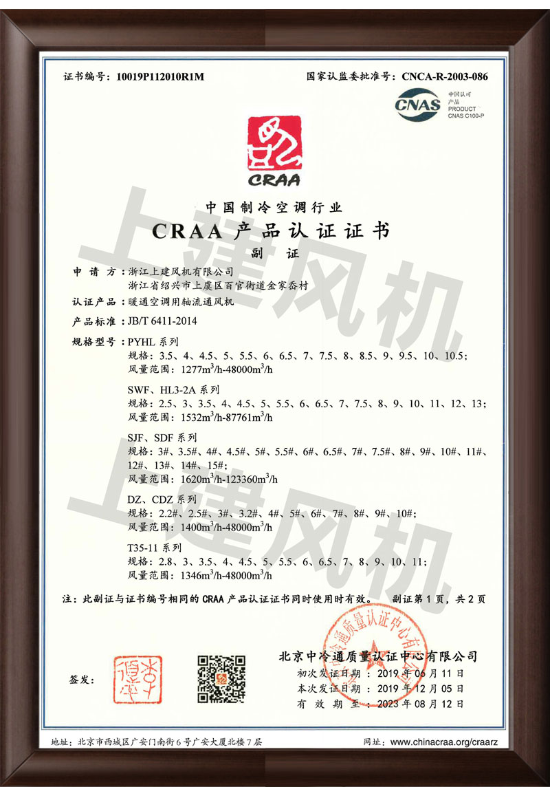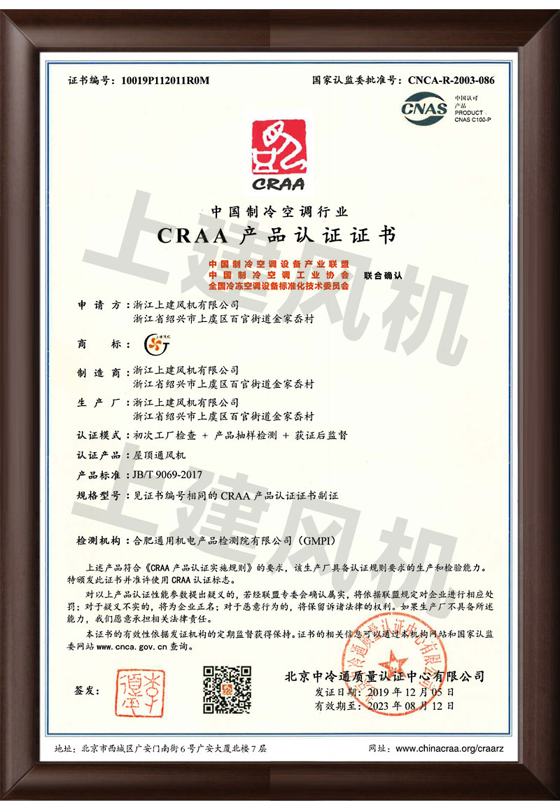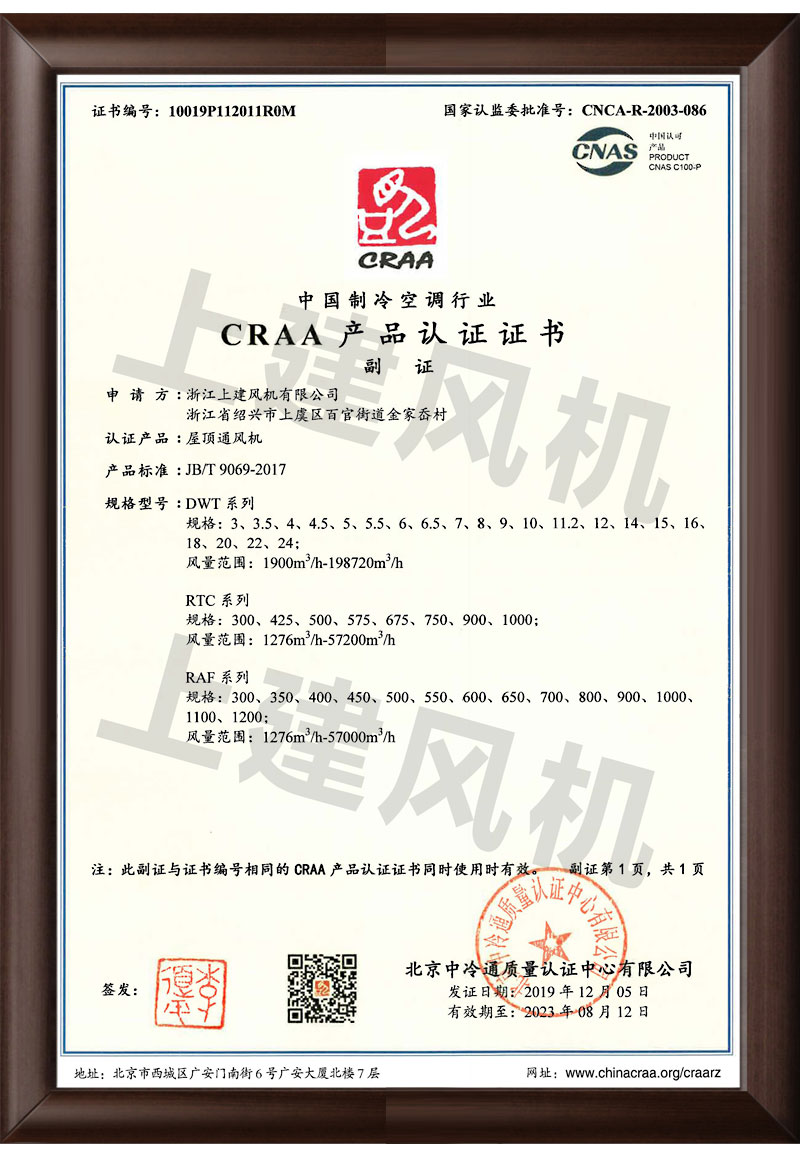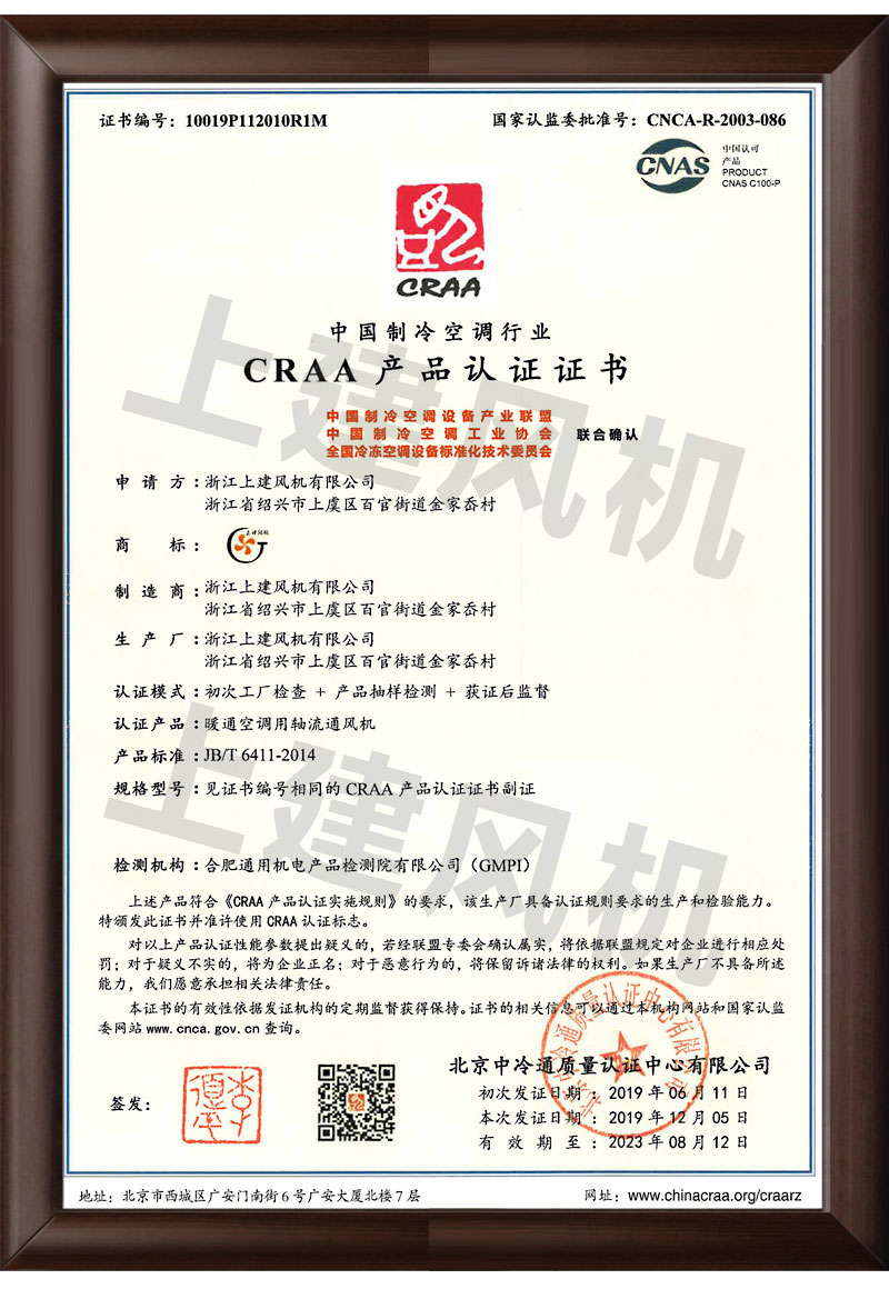 CRAA产品认证证书