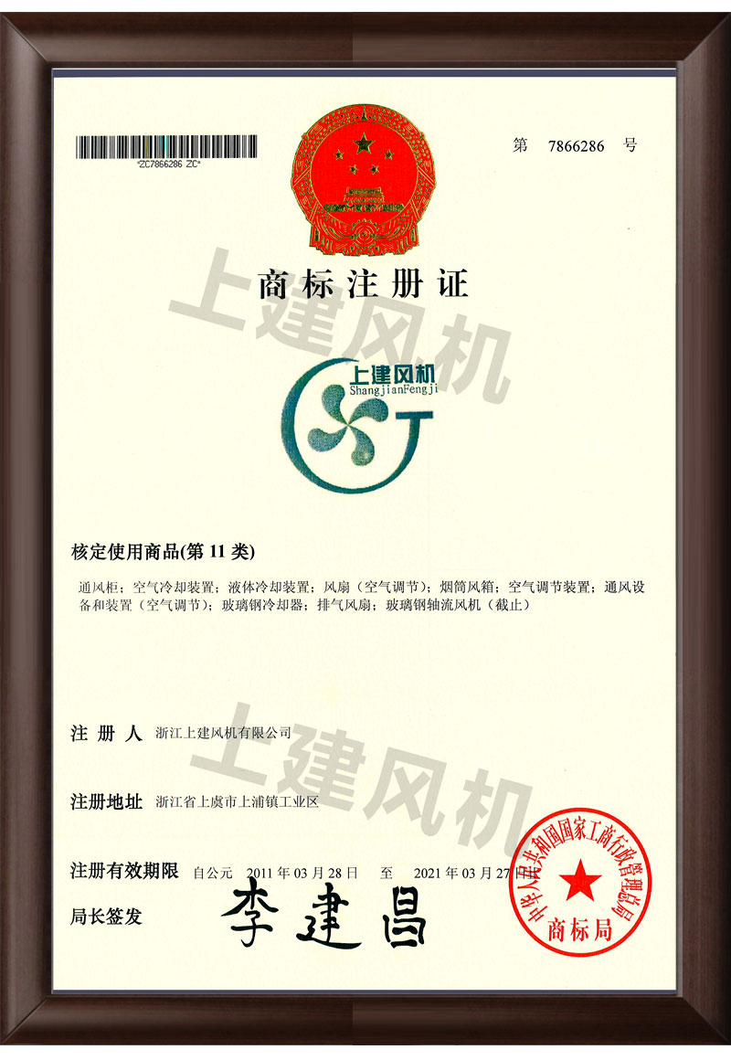 广东会风机商标注册证