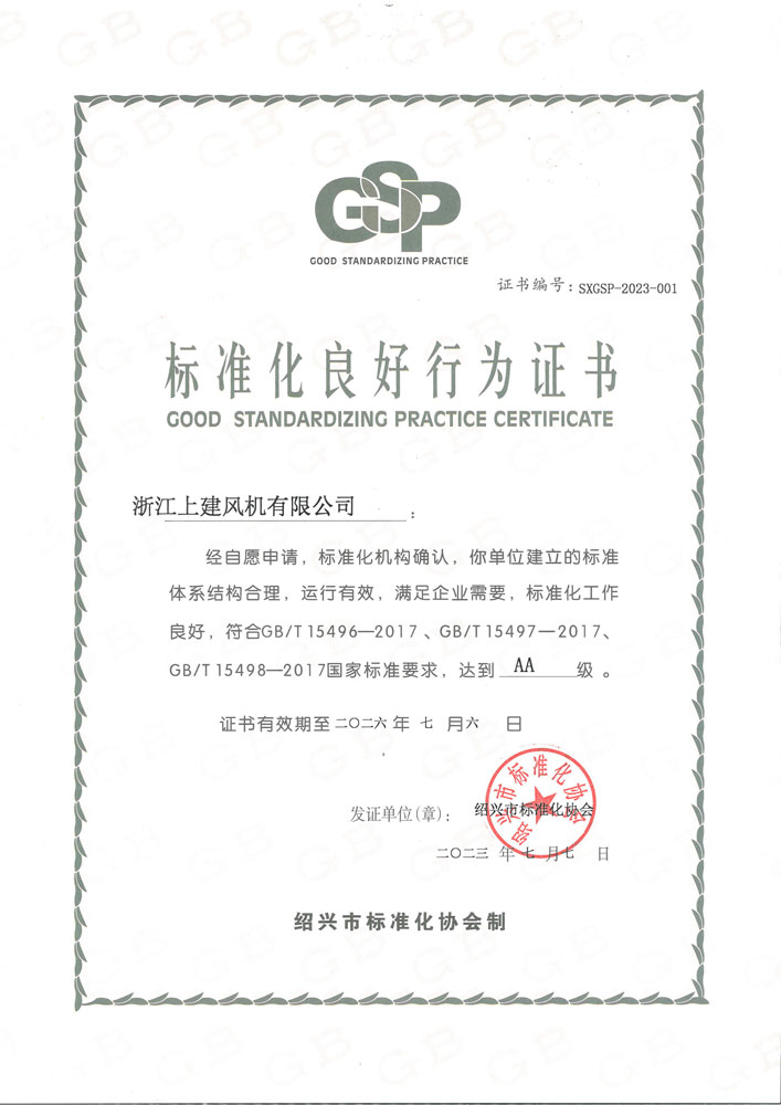 标准化良好企业证书