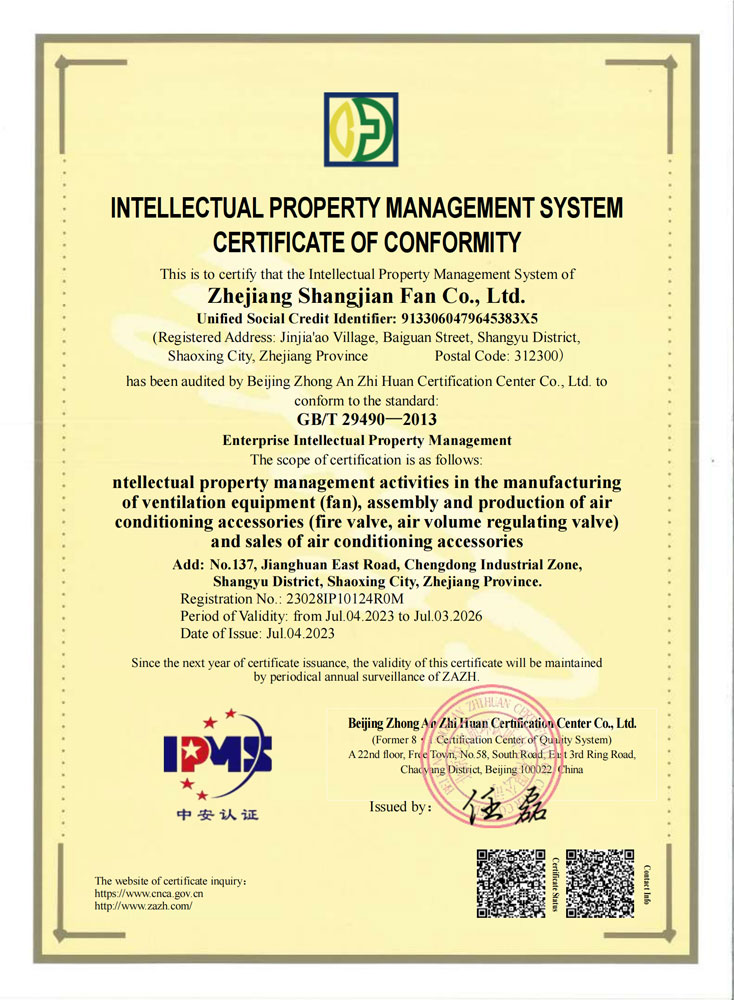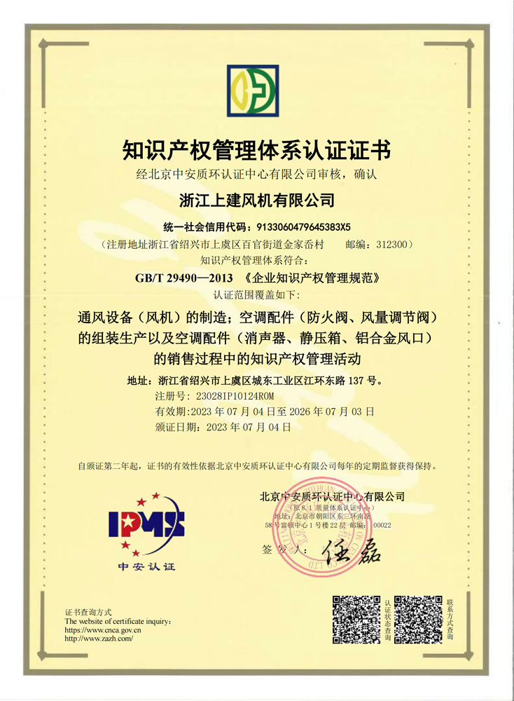 知识产权管理体系认证证书