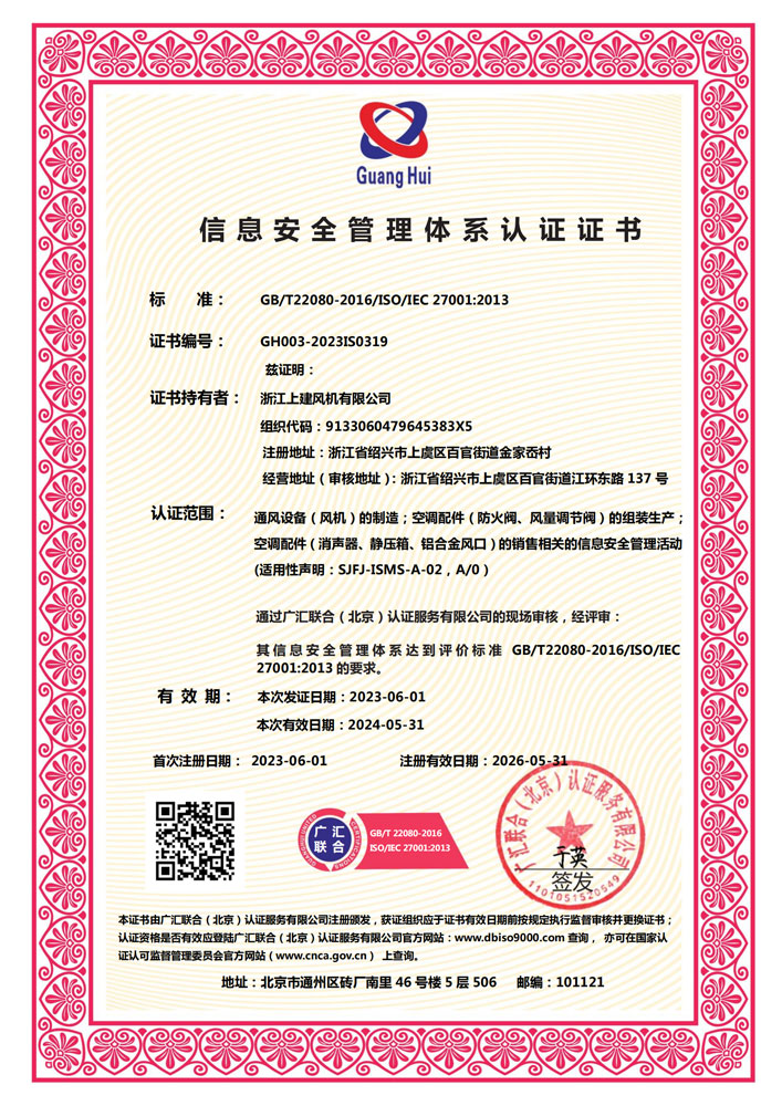 信息安全管理体系认证证书