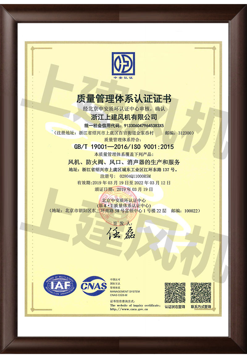 质量体系认证书(中文)