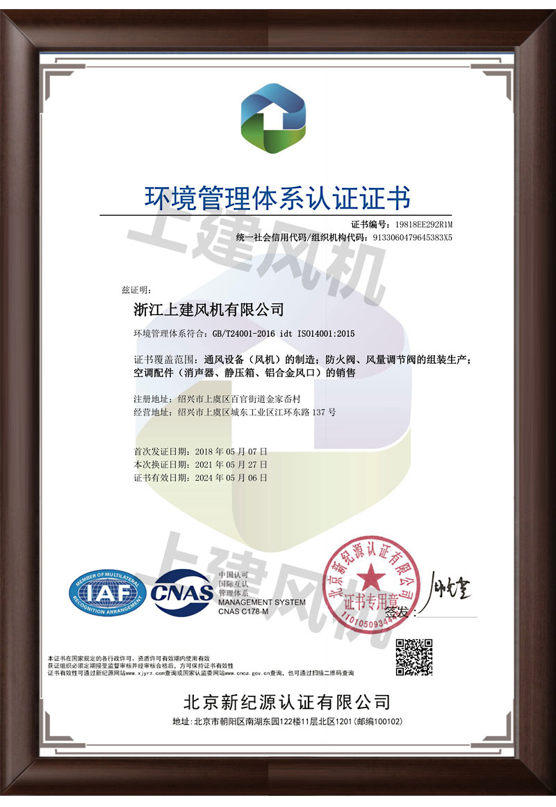 环境管理体系认证证书