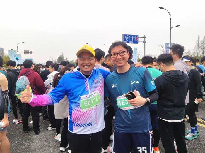 比赛前,公司童董事长表示:“员工是企业发展的基石。通过参与马拉松比赛,我们不仅希望员工能够感受到运动带来的快乐和成就感,更希望通过这一活动,让整个团队体验到团结合作、共同进取的珍贵瞬间。”