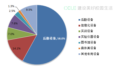 9月份教育装备行业招标采购信息分类占比情况如上图所示:后勤设备招标采购信息共计2551条,占58.03%;信息化设备招标采购信息共计621条,占14.13%;实验仪器设备招标采购信息共计332条,占7.55%;实训设备招标采购信息共计307条,占6.98%;图书馆设备招标采购信息共计110条,占2.50%;音体美设备招标采购信息共计57条,占1.30%;其他专用设备招标采购信息共计418条,占9.51%。