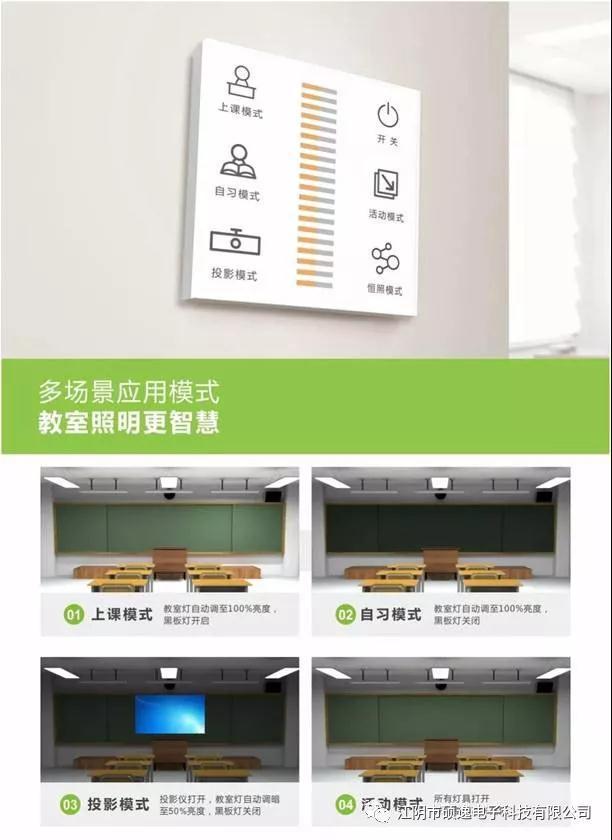 自习模式:教室灯自动调至100%亮度,黑板灯关闭;