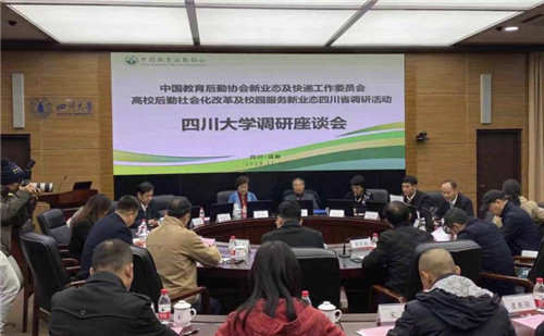 2019年11月25日-27日,中国教育后勤协会专家委员会主席、中国教育后勤协会新业态及快递工作委员会主任、《校园服务新业态:机遇与挑战》课题组组长程天权带领专家组赴四川省开展高校后勤社会化改革及校园服务新业态调研活动并主持召开《校园服务新业态:机遇与挑战》课题结题研讨会。调研组先后前往四川大学、四川农业大学、成都大学等高校进行实地考察并召开座谈会,主要围绕新时代高校后勤社会化改革的顶层设计及配套政策需求,四川省校园服务新业态发展状况、高校后勤服务保障队伍建设情况等开展深入的调查、交流与研讨。