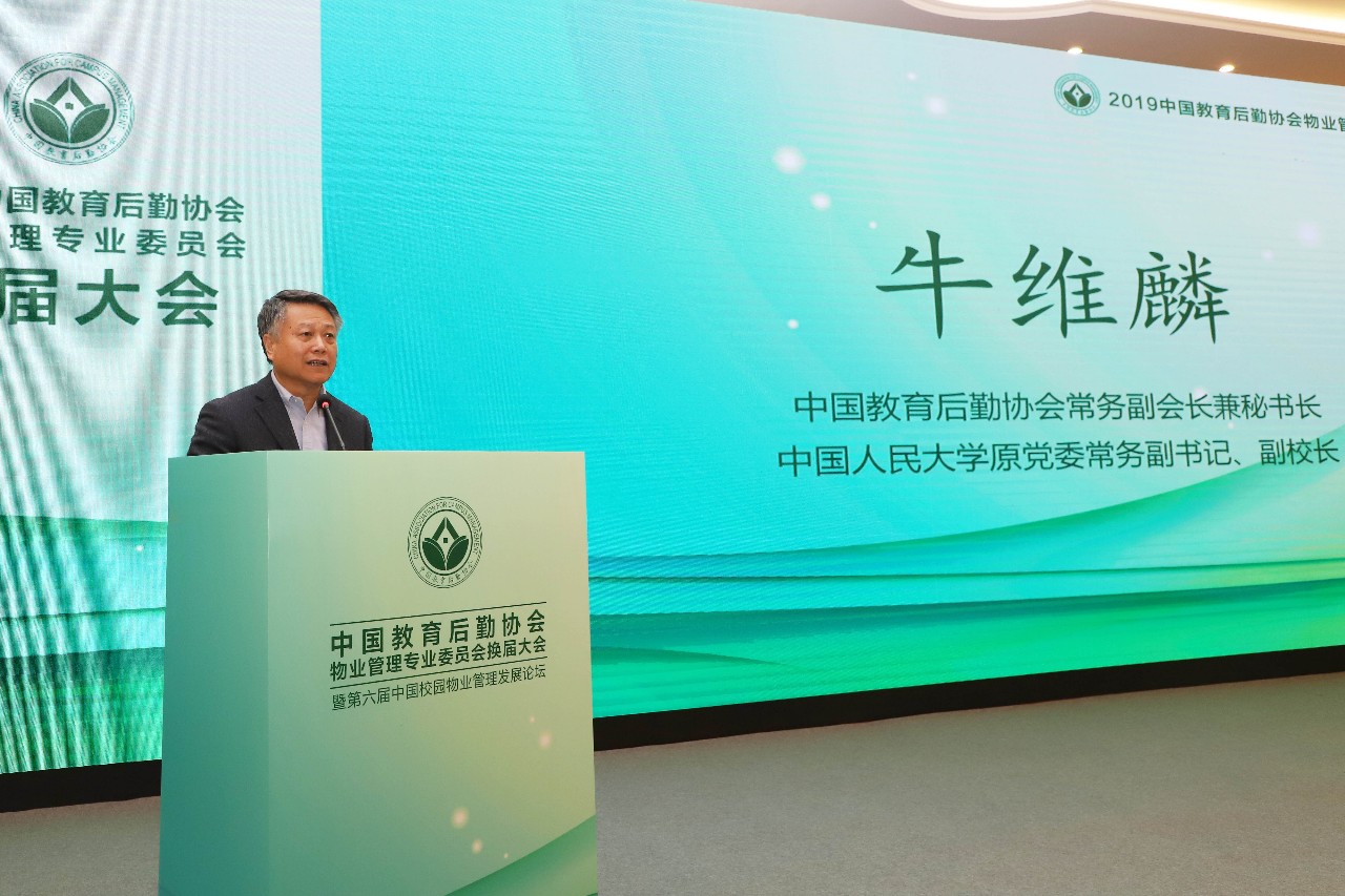 牛维麟常务副会长在讲话中充分肯定了物专会第一届委员会的工作,并深刻分析了当前我国教育事业发展面临的新形势和新任务,他指出中国正处在一个新的历史时期,整个社会服务产业进入快速发展和转型升级的新阶段,教育要通过自身现代化引领国家现代化,校园后勤服务管理现代化是实现教育现代化的重要支撑。如何促进大学校园服务管理体制机制创新和质量效率提升,充分满足广大师生日益增长的校园生活需求,为实现教育现代化提供可靠支撑和保障,这是新一届物专会全体委员单位共同面对的重大课题。