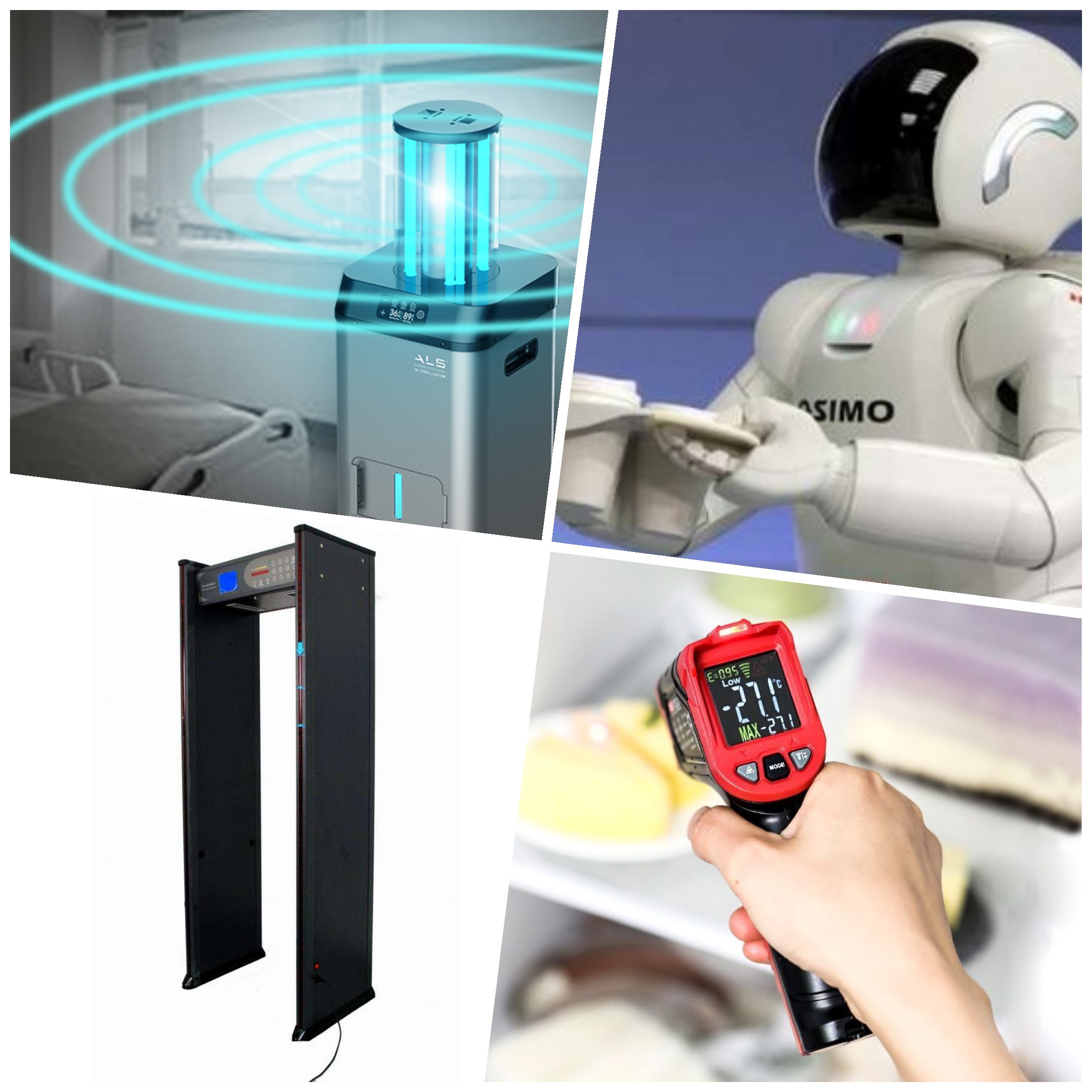 智能测温人员通道、空气消毒机、智能UV杀菌系列、智能消毒机器人、红外热成像测温设备、人脸测温安检门、手持测温热像仪、来访接待机器人等。