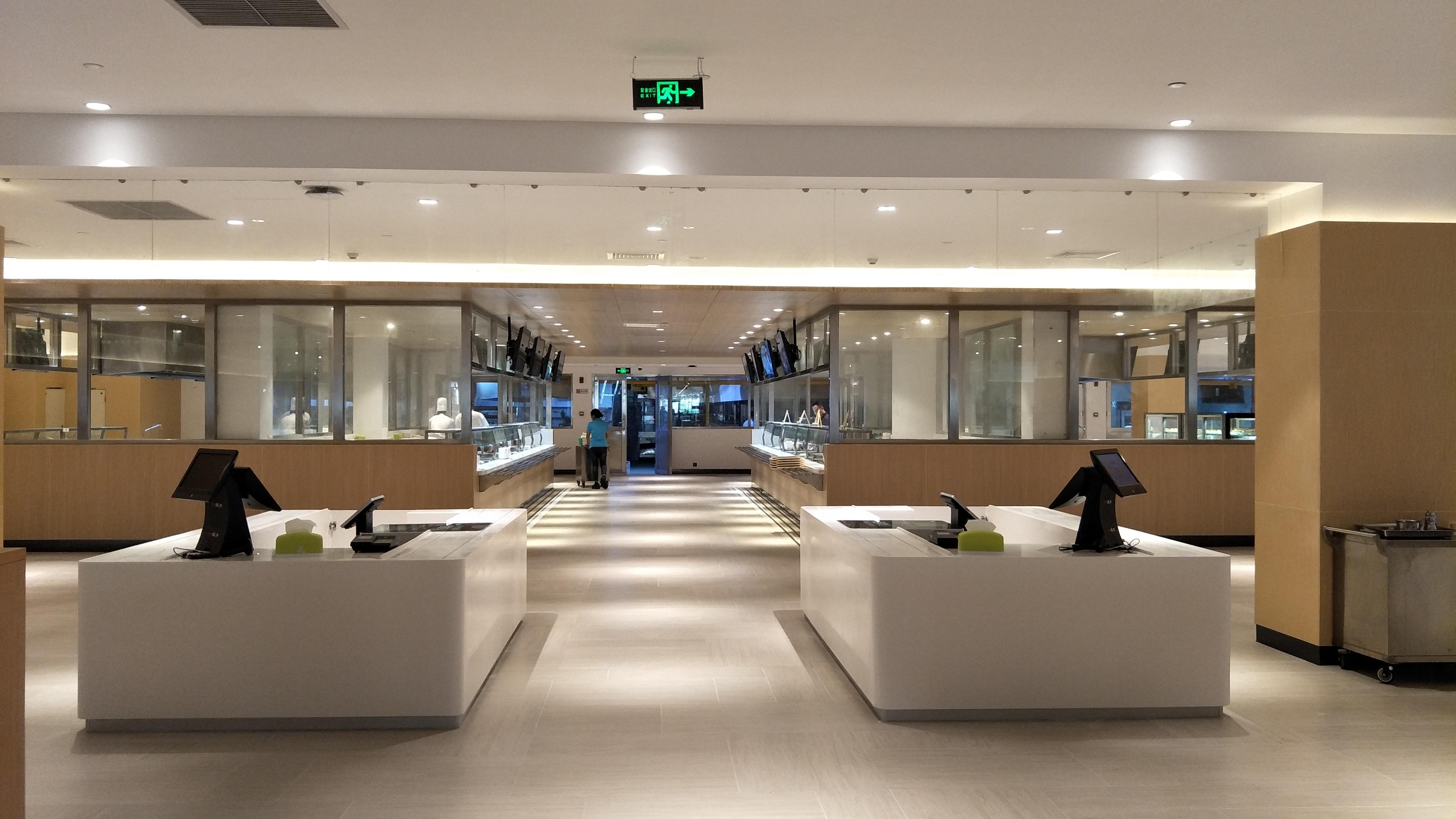 学生自由选取菜品后,将托盘放置在智能结算台上,系统1S识别,智能核算整单价格,可以刷学生卡或刷脸支付,排队时间降低60%。