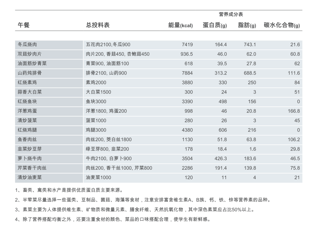 通过智能备餐台和结算台的应用,可详尽记录每份售卖菜品的信息,每位学生的消费记录,同时结合“中国居民膳食宝塔”、“中国居民膳食能量需要量”和时令、地域特色等。
