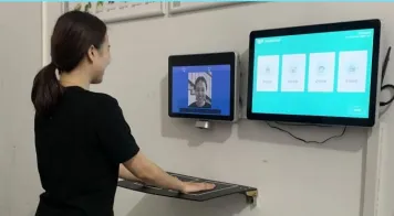 在就餐区和洗消间,配有阳光公示的数字大屏和洗消的一体化设备;