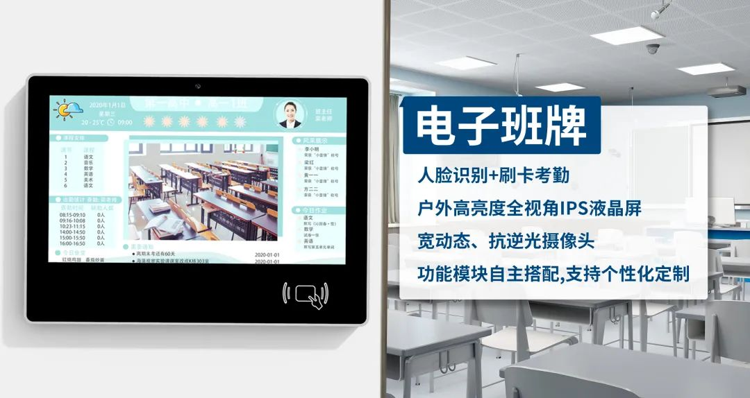 电子班牌具有多样性的交互功能,随着教育厅关于义务教育阶段进行课改,走课制的实施,班牌解决了眼下急需的到班考勤统计硬件问题。