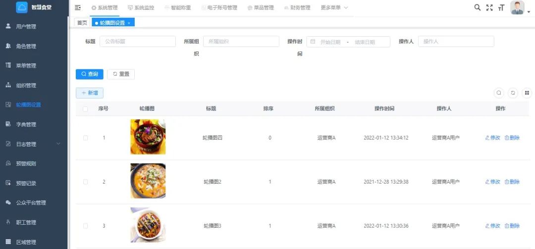 支持修改菜品图片、名称、所属组织;