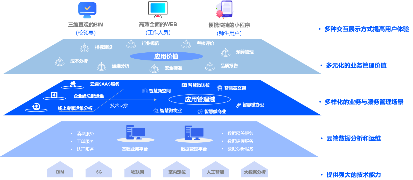 公司围绕政府、教育、医疗等行业数字化需求进行产业布局,依托数据智能、边缘计算、数字孪生等关键核心技术形成综合业务治理平台、BIM中央管理平台、融合大数据平台、云边协同智慧网关、数据中心效能跃升系统等核心产品,构建智慧城市、智慧教育、智慧医疗、智能建筑等行业创新解决方案。