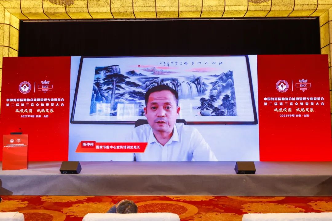 国家节能中心宣传培训处处长陈仲伟在视频致辞中表示,要深入贯彻落实习近平总书记提出的“碳达峰、碳中和”目标,深刻认识到节能低碳发展的重要意义,转变能源结构、产业结构、生产生活方式。高校是节能降碳的重要领域,具备人数多、体量大、能源消耗大的特点,推进绿色学校建设、培养“双碳”人才,对学校和社会都意义重大。陈仲伟表示,下一步国家节能中心将继续与中国教育后勤协会开展合作,“十四五”期间培训万名“高校能源与碳资产管理”高级人才。继续办好“讲好节能故事”微视频、摄影及征文作品大赛,扩大活动影响力,推进形成全民节能理念。
