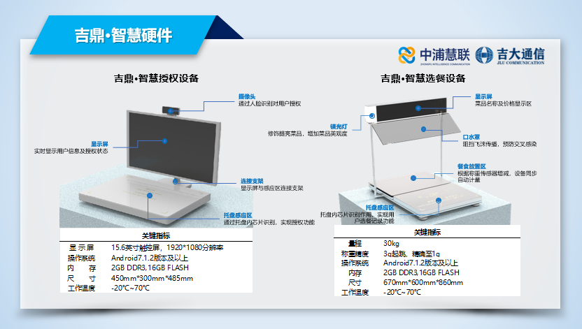 智慧选餐设备主要搭载了传感技术与一体化智能系统,用于菜品录入系统和自助结算,实现自助选餐和自助控量,减少浪费。