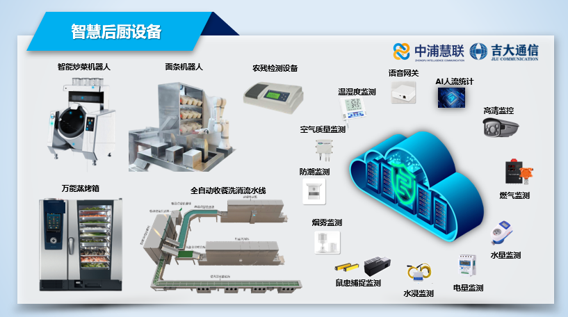 对于经营者,可实现餐前人员检测、农残检测、菜品留样、精准备餐需求;备餐中环境监测、异常告警、明厨亮灶、无人后厨需求;备餐后财务管理、评价提升、远程监管、科学分析需求。