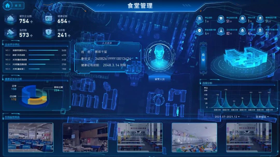 一是利用视频监控、人脸识别、视频智能AI分析、物联感知等先进技术对餐饮单位后厨人员持证情况、穿戴情况、四害防治情况、卫生消毒环境等各方面进行在线远程智能监管,从而加强食品安全管理员线上巡查能力。