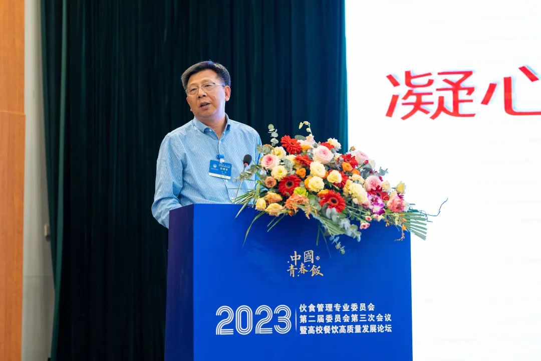 全国伙专会秘书处办公室主任,中国人民大学后勤集团餐饮管理部部长王祚荣介绍了全国伙专会编写的《高等学校餐饮服务单位反食品浪费工作指南》和《高等学校智慧餐饮建设规范》,为深入推进制止餐饮浪费和学校智慧餐饮建设提供了工作参考。