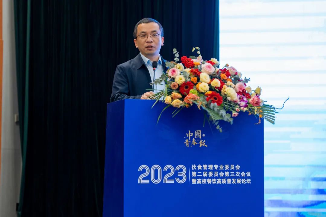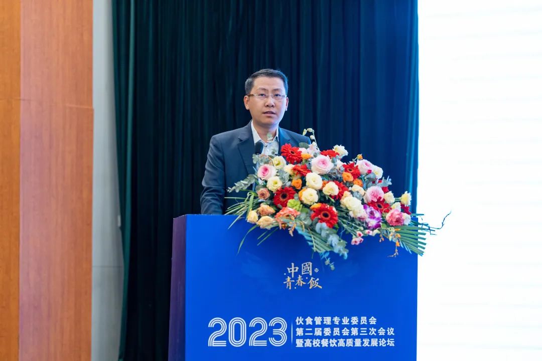 四川省高校后勤协会伙食专业委员会秘书长,电子科技大学饮食服务中心主任王登峰作了题为《凝心聚力、齐抓共举,合力构建一流高校饮食服务体系》报告,分别介绍了江苏省伙专会和四川省伙专会工作开展情况,展现了省级伙专会奋发昂扬的精神风貌。