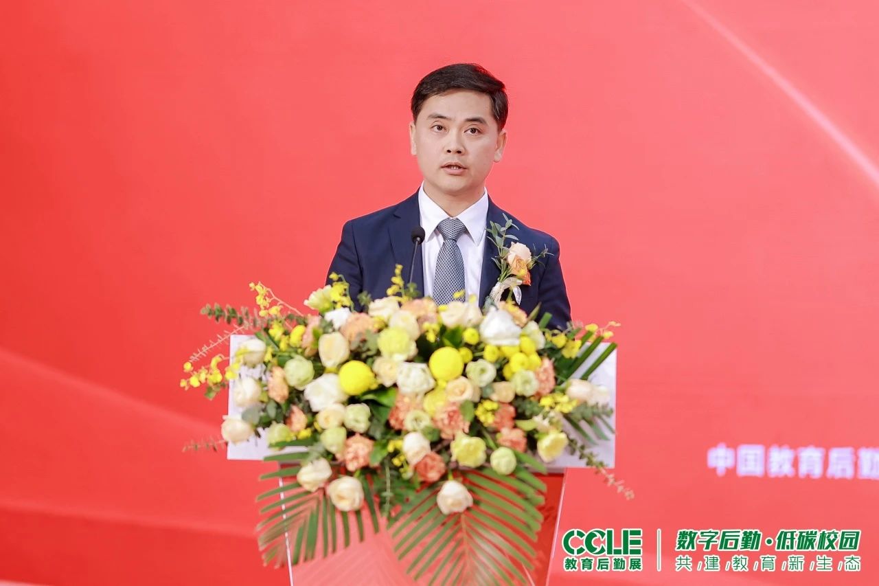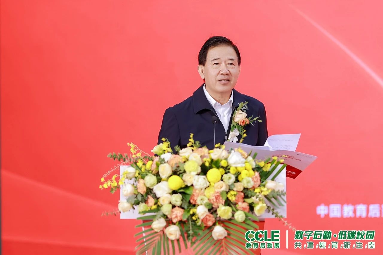 刘建平在开幕式上发表讲话。他表示,CCLE广东会作为全国唯一专注教育后勤领域的品牌展览会,已成功举办了五届,本届展会持续为行业搭建重要的展示交流平台,同期举办各类相关领域会议活动,希望大家多看、多交流、多思考,共同为教育后勤的发展谋划新篇章。教育后勤经过数十年的改革发展,取得了很大进步,但仍有很多不足,尤其是协会在多次调研中发现,后勤在服务保障能力、师生对后勤服务保障的需求等方面仍有很大差距和不足,我们要不断拓展思路,提升后勤服务质量。经过5年的共同努力,中国广东会览会已成长为推进行业高质量发展的重要平台,我们相信在各方的共同努力下,中国广东会览会的“朋友圈”会越做越大,越做越好,吸引力会越来越强。在教育系统产生更大影响,共同推动教育后勤事业高质量发展再上新台阶。