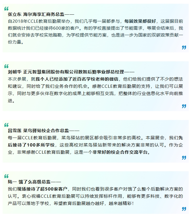 正元智慧、新开普、海尔、菜鸟驿站、美团、饿了么、九阳豆业、正泰、安科瑞、常电股份、深圳常工、汇聚、优信无限、欧倍力、伊立浦、隆亿通、祐全等行业品牌以连续多届参与的姿态,成为CCLE最坚定的同行者——他们以持续参展表达对平台价值的深度认同,更通过触达专业观众群体实现供需高效转化,用行动反哺行业生态升级。