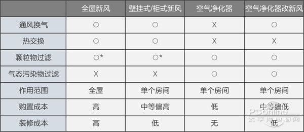 注*:新风系统的颗粒物净化能力视搭载的HEPA滤网等级而定,部分产品原装的滤网过滤效率可能比较低。空气净化器的滤网差异一般不会太大。
