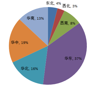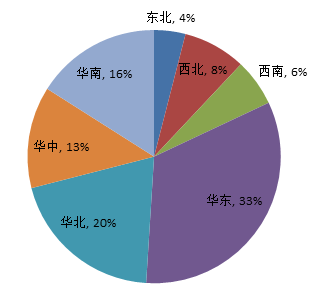 从7月招标采购信息地区统计图和全国招标采购信息量地区占比图可以看出:华东地区招标采购信息量为1809条,占比33%;华北地区招标采购信息量为1078条,占比20%;华南地区招标信息采购量为887条,占比16%;华中地区招标采购信息量为682条,占比13%;西北地区招标采购信息量为451条,占比8%;西南地区招标采购信息量为352条,占比6%;东北地区招标采购信息量为239条,占比4%。