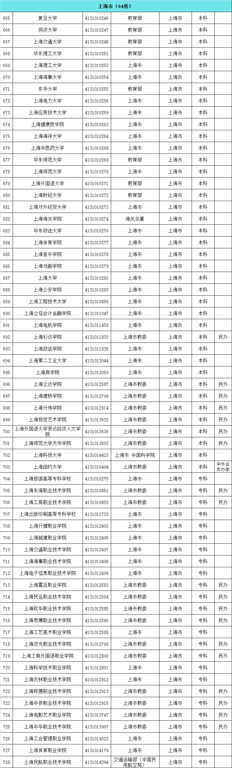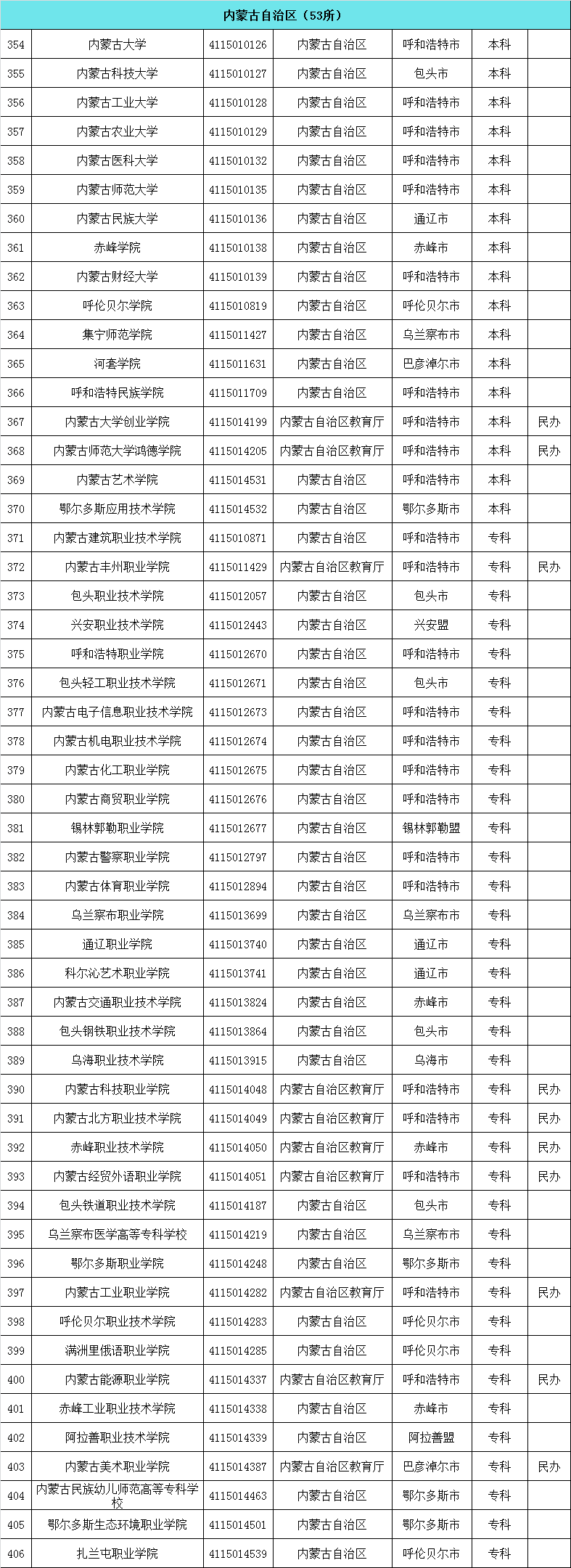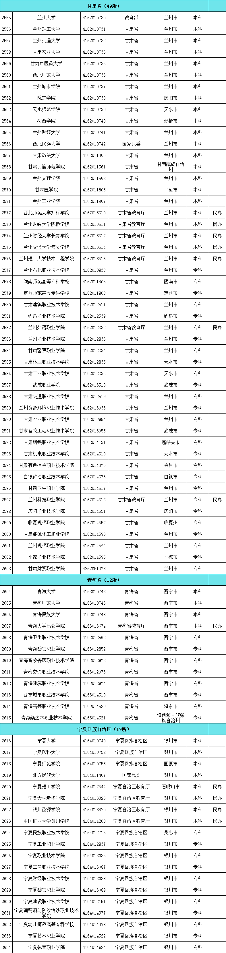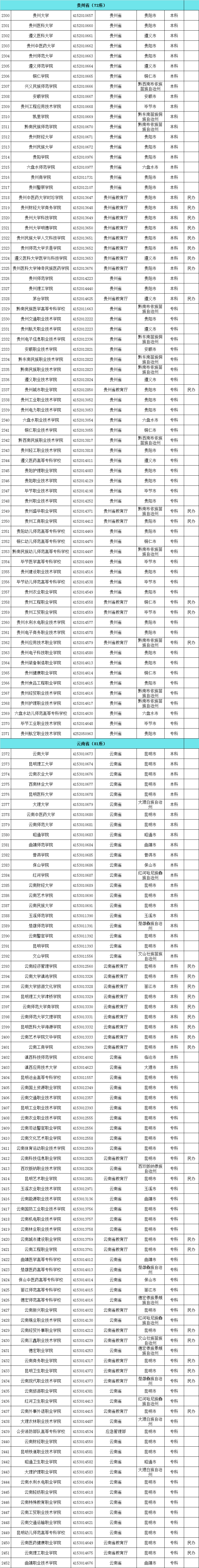 教育部公布了2019年全国高校名单。截至2019年6月15日,全国高等学校共计2956所,其中:普通高等学校2688所(含独立学院257所),成人高等学校268所。